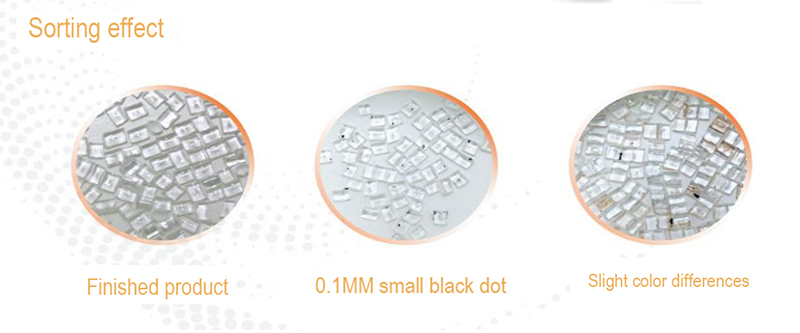 Sorting of various plastic particles (transparent particleso,paque particles,translucent particles).